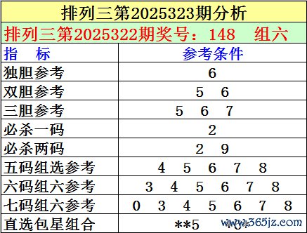 1.摆设三最近十期诀别开出号码:445-802-973-918-756-438-865-725-568-148,其中有5期奖号开出了上期的重叠号码,本期防重号轮空,摈斥第2025322期奖号:148中的号码,关切号码:6。